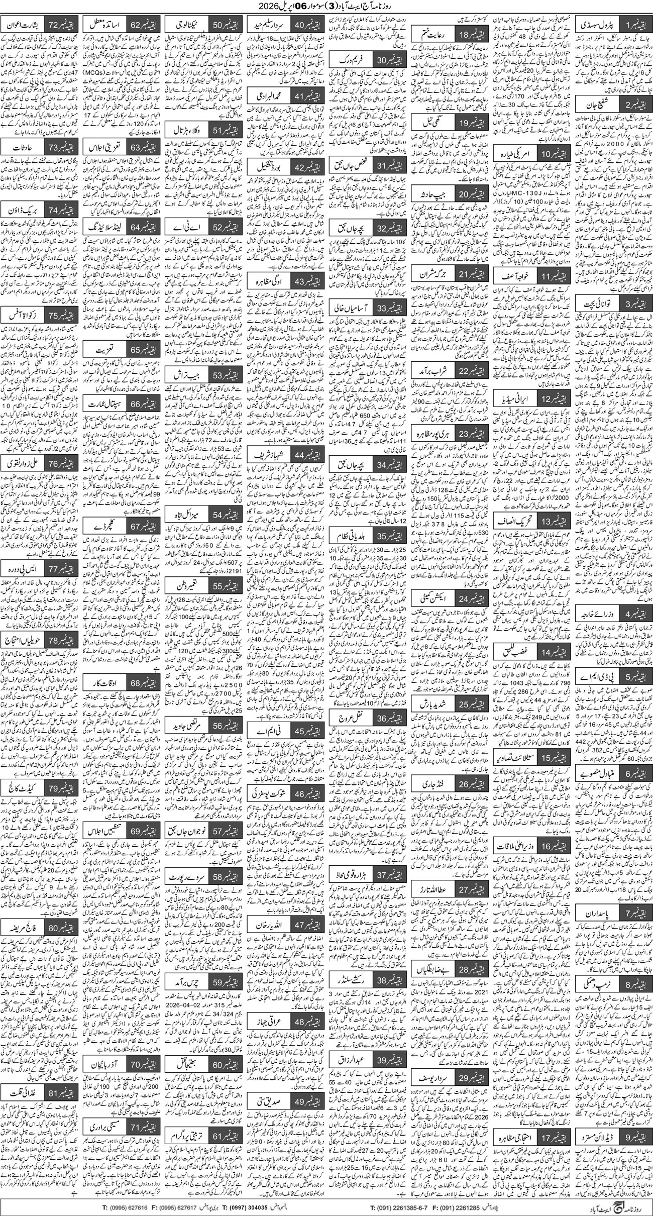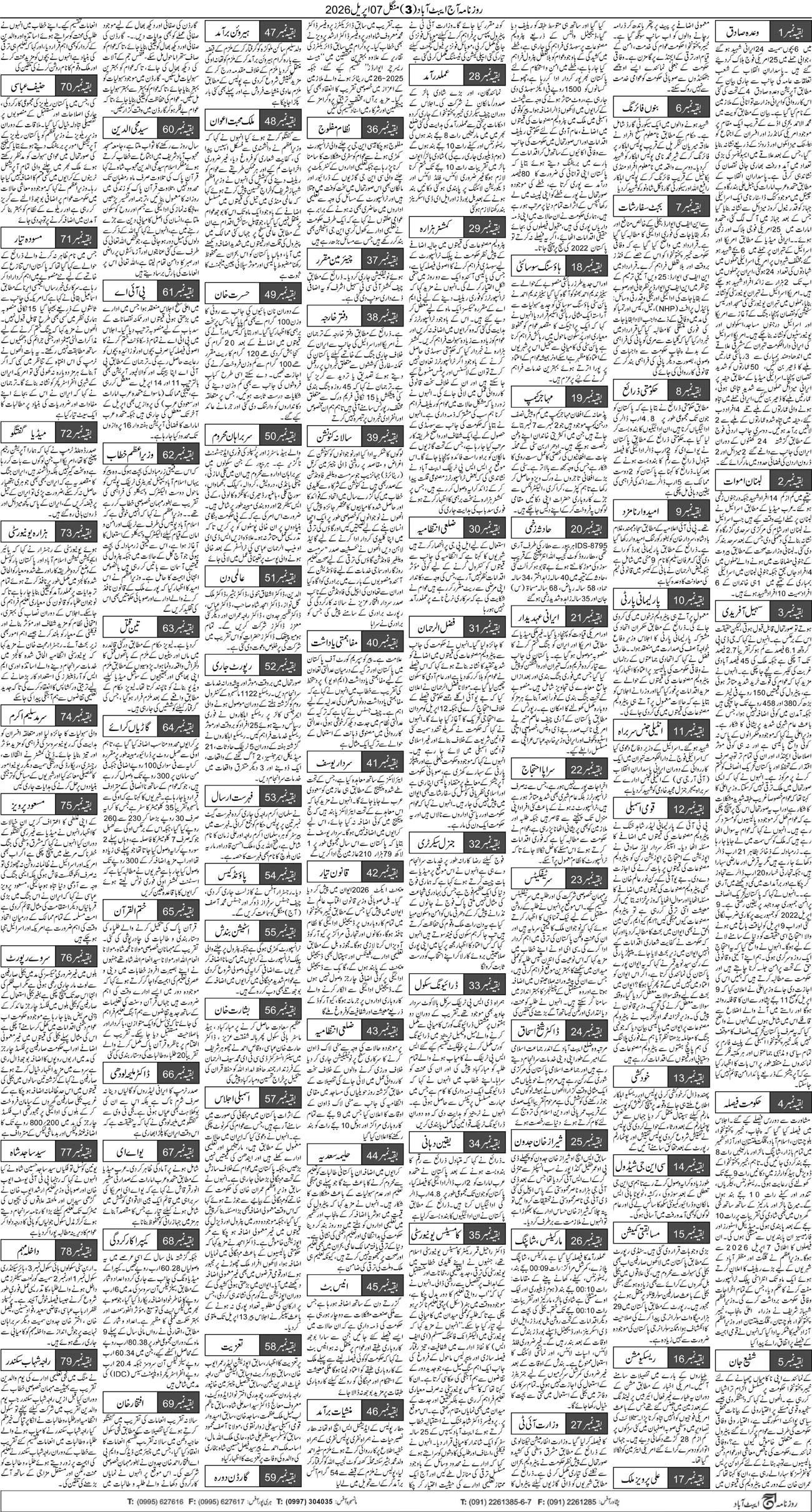 Daily Aaj | Daily Aaj Abbottabad: Daily Aaj Abbottabad Epaper Online Edition Daily Aaj Abbottabad is one of the best and most circulated Urdu newspaper in Abbottabad which is published simultaneously from Abbottabad, Islamabad and Peshawar in April 1989. Abdul Wahid Yousufi is the editor of Daily Aaj Newspaper Today online Edition is updated for Internet Users daily on 10:00 am PST.Aaj epaper , Daily Aaj Newspaper, Daily Aaj Abbottabad epaper, Daily AAJ, Daily Aaj Akhbar Abbottabad and Peshawar Editions are published daily and access through out worldwide on Internet.
