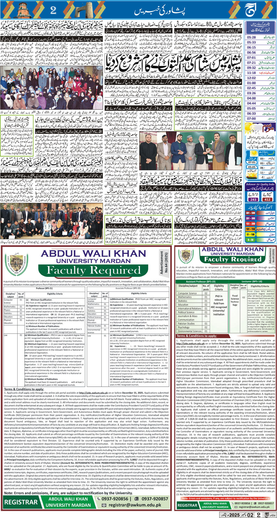 Daily Aaj Peshawar : Daily newspaper Peshawar Epaper Daily Aaj Peshawar
