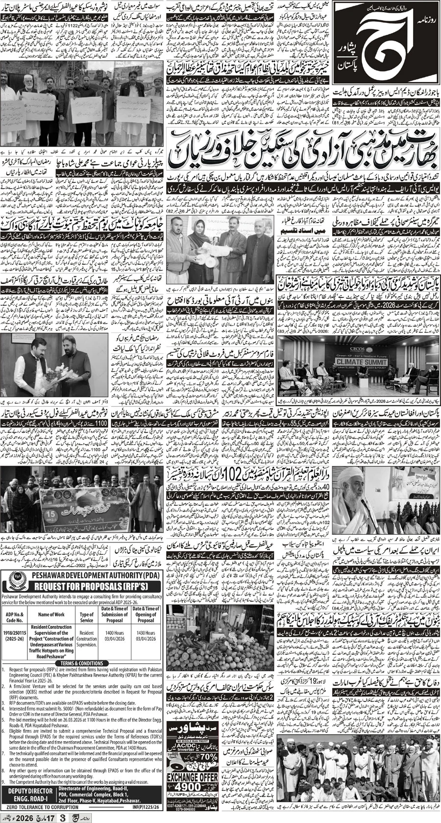 Daily Aaj Peshawar Page 3 epaper Peshawar