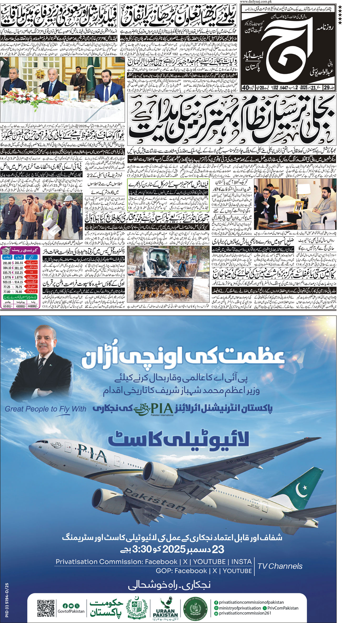 Today Daily Aaj Abbottabad-Peshawar Dated: 23-12-2025