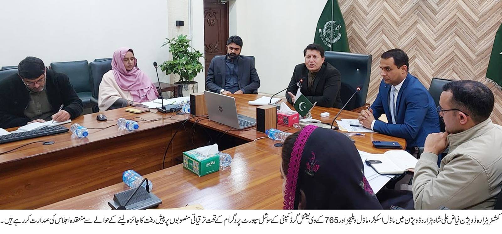 ایبٹ آباد: کمشنر ہزارہ ڈویژن فیاض علی شاہ کی زیرِ صدارت ہزارہ ڈویژن میں ماڈل اسکولز، ماڈل ویلیجز اور 765 کے وی نیشنل گرڈ کمپنی کے سوشل سپورٹ پروگرام کے تحت ترقیاتی منصوبوں پر پیش رفت کا جائزہ لینے کے لیے اجلاس منعقد ہوا۔ اجلاس میں ہزارہ ڈویژن کے تمام اضلاع کے ڈپٹی کمشنرز، ایڈیشنل ڈپٹی کمشنر (F&P) اور ڈسٹرکٹ ایجوکیشن آفیسرز (میل و فیمیل) نے شرکت کی، جبکہ شرکاء کو سیکرٹری ٹو کمشنر ہزارہ ڈاکٹر عبد الواجد کی جانب سے بریفنگ دی گئی۔کمشنر ہزارہ نے ماڈل اسکولز کے قیام سے متعلق ہدایات جاری کرتے ہوئے کہا کہ جن اسکولوں کو ماڈل اسکول قرار دیا گیا ہے، وہاں اہل، قابل اور تجربہ کار پرنسپلز اور اساتذہ کی پروفائلنگ مکمل کر کے بروقت تعیناتی یقینی بنائی جائے۔ انہوں نے کہا کہ ہر تحصیل میں قائم ماڈل اسکولز کی نگرانی متعلقہ ضلعی افسران کریں گے، جبکہ نیشنل گرڈ کوریڈور سے ایک کلومیٹر کے اندر واقع اسکولوں اور دیہات میں سوشل سپورٹ فنڈز کے ذریعے ماڈل اسکولز کو جدید دور کے تقاضوں کے مطابق اپ گریڈ کیا جائے گا۔کمشنر نے واضح کیا کہ ماڈل اسکولز کے قیام کا بنیادی مقصد سرکاری اسکولوں کے طلبہ کو نجی اسکولوں کے طلبہ کے ساتھ مؤثر مسابقت کے قابل بنانا ہے۔ اس مقصد کے حصول کے لیے تعلیمی معیار کی بہتری، جدید آئی ٹی اور کمپیوٹر لیبز، آرٹیفیشل انٹیلیجنس کی کلاسز، طلبہ کے لیے طبی سہولیات، نفسیاتی کونسلنگ، اعتماد سازی اور موٹیویشنل سرگرمیوں کا اہتمام کیا جائے گا۔اجلاس سے خطاب کرتے ہوئے کمشنر ہزارہ نے اعلان کیا کہ ہزارہ ڈویژن کے ہر ضلع میں ایک ماڈل گاؤں قائم کیا جائے گا، جس کا مقصد کمیونٹی کے زیرِ انتظام، ماحول دوست اور خود کفیل دیہات کا قیام ہے۔ ان ماڈل ویلیجز کے ذریعے عوام کو باعزت معیارِ زندگی فراہم کیا جائے گا، جنگلات، آبی ذخائر اور قدرتی مناظر کے تحفظ کو یقینی بنایا جائے گا، جبکہ مقامی سطح پر پائیدار روزگار کے مواقع بھی پیدا کیے جائیں گے۔ انہوں نے کہا کہ یہ ماڈل گاؤں مستقبل میں خیبر پختونخوا کے دیگر اضلاع کے لیے قابلِ تقلید مثال بنیں گے۔کمشنر ہزارہ نے مزید کہا کہ ماڈل ویلیجز کی ترقی میں مقامی کمیونٹی کو براہِ راست شامل کیا جائے گا اور چھوٹے مگر مؤثر اقدامات کے ذریعے صحت، تعلیم، صاف پانی، صفائی ستھرائی اور دیگر بنیادی سہولیات فراہم کی جائیں گی۔ منصوبوں کی پائیداری کے لیے کمیونٹی پر مشتمل کوآرڈینیشن کمیٹیاں قائم کی جائیں گی، جبکہ ماڈل ویلیجز سے اسکولوں میں بچوں کے داخلے کا باقاعدہ آغاز بھی کیا جائے گا۔اجلاس میں کمشنر ہزارہ نے ہدایت کی کہ نیشنل گرڈ کوریڈور کے سوشل سپورٹ پروگرام کی تمام اسکیموں کو فوری طور پر حتمی شکل دے کر کمشنر آفس کے ساتھ شیئر کیا جائے تاکہ مزید مشاورت کے بعد حتمی تجاویز پاور ڈویژن کو ارسال کی جا سکیں۔اجلاس کے اختتام پر اس عزم کا اظہار کیا گیا کہ ہزارہ ڈویژن میں تعلیم، دیہی ترقی، ماحولیاتی تحفظ اور عوامی فلاح و بہبود کے لیے تمام متعلقہ ادارے باہمی تعاون سے مؤثر اور عملی اقدامات جاری رکھیں گے۔