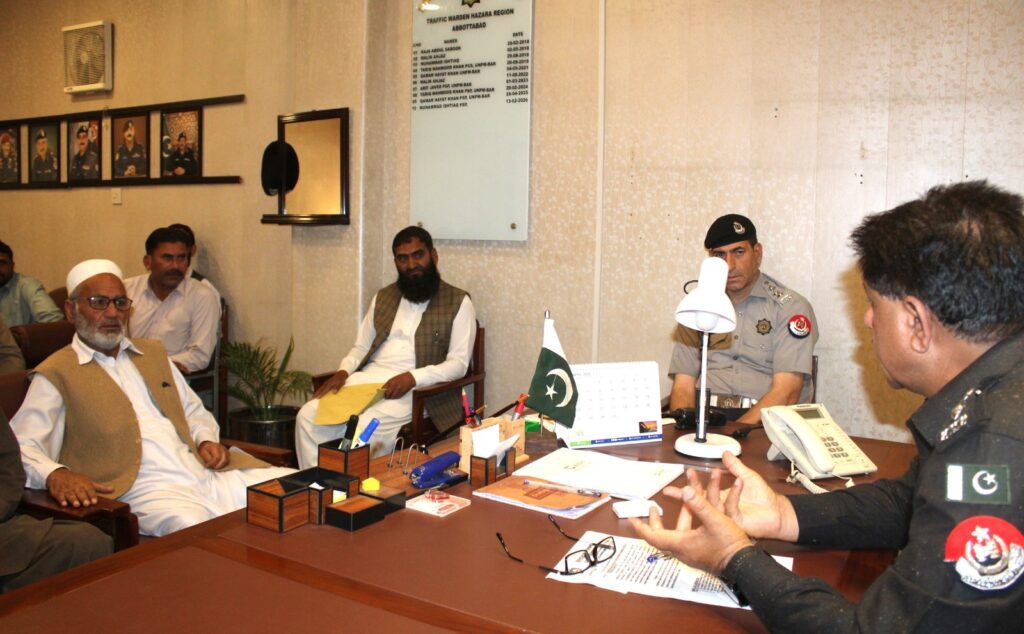 ایس ایس پی ٹریفک محمد اشتیاق کی زیر صدارت ایبٹ آباد بھر میں قائم پرائیوٹ ڈرائیونگ سکولز کے مالکان کے ہمراہ اہم میٹنگ منعقد ہوئی۔ جس میں ڈرائیونگ سکولز کے معیار کو بہتر بنانے اور ٹریفک قوانین پر عملدرآمد کو یقینی بنانے کے حوالے سے اہم ہدایات دیں گئیں۔